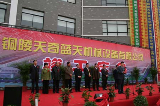 2008年3月28日上午9:58分,公司新廠區(qū)竣工典禮在經(jīng)濟開發(fā)園區(qū)隆重舉行。銅陵市委書記姚玉舟、市委常委副市長鄒震、市委常委市委秘書長李敬明、市人大副主任唐思定、市政協(xié)副主席王剛英、銅陵市紀(jì)委副書記汪曉蘭、市經(jīng)濟技術(shù)開發(fā)區(qū)管委會主任張志文、帶式輸送機協(xié)會秘書長李群,江蘇南方天奇集團公司董事長、江蘇天奇物流系統(tǒng)工程股份有限公司創(chuàng)始人黃偉興先生,江蘇天奇物流系統(tǒng)工程股份有限公司總經(jīng)理、銅陵天奇藍天機械設(shè)備有限公司董事長楊雷等相關(guān)領(lǐng)導(dǎo)出席了竣工典禮。出席2007年度天奇股份先進表彰大會代表們、供應(yīng)商、客戶代表以及社會各界友人近200人參加了大會。典禮儀式由銅陵天奇藍天機械設(shè)備有限公司總經(jīng)理汪國春主持。