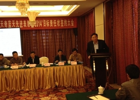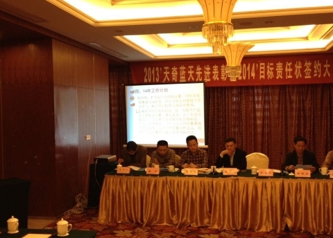 總經理錢立華宣讀了2014年天奇藍天任職通知,并與各部門簽定了2014年的目標責任狀。