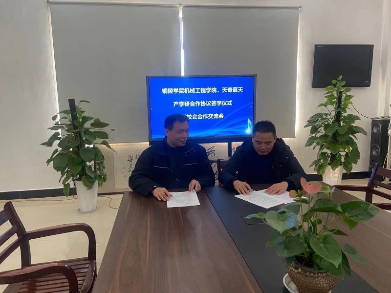 2020年12月15日上午,銅陵學(xué)院機(jī)械工程學(xué)院與我公司簽署戰(zhàn)略合作協(xié)議儀式在綜合樓一樓會(huì)議室隆重舉行。出席儀式有天奇藍(lán)天總經(jīng)理章愛(ài)前、財(cái)務(wù)部長(zhǎng)丁繼剛、技術(shù)總工程師范守廣、技術(shù)部長(zhǎng)吳光強(qiáng)、及綜合部部長(zhǎng)施樂(lè)勤等,銅陵學(xué)院機(jī)械工程學(xué)院王涇文院長(zhǎng),夏兆清書(shū)記等出席戰(zhàn)略合作協(xié)議簽約儀式。 會(huì)上,天奇藍(lán)天公司章總代表公司向各位校領(lǐng)導(dǎo)的到來(lái)表示熱烈的歡迎,并介紹了我公司生產(chǎn)經(jīng)營(yíng)情況。他希望校企雙方根據(jù)戰(zhàn)略合作協(xié)議,加快開(kāi)展實(shí)質(zhì)性、規(guī)范化、系統(tǒng)化的合作步伐,通過(guò)相互交流,通過(guò)產(chǎn)學(xué)研深度融合,實(shí)現(xiàn)雙方事業(yè)邁上新臺(tái)階。 銅陵學(xué)院機(jī)械工程學(xué)院王院長(zhǎng)首先代表學(xué)院對(duì)天奇藍(lán)天公司邀請(qǐng)和支持表示感謝。他在講話中指出,愿意推進(jìn)與天奇藍(lán)天公司的深度合作,開(kāi)展科產(chǎn)業(yè)的相互合作,共同推進(jìn)經(jīng)濟(jì)社會(huì)的發(fā)展。 會(huì)后,天奇藍(lán)天公司章總和銅陵學(xué)院機(jī)械工程學(xué)院王院長(zhǎng)簽署了產(chǎn)學(xué)研合作協(xié)議, 本次成功簽約標(biāo)志著我公司與銅陵學(xué)院機(jī)械工程學(xué)院進(jìn)入深度合作的階段,未來(lái)將在產(chǎn)、學(xué)、研等各方面共同創(chuàng)新發(fā)展。 |